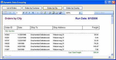 To make life little more interesting, I added three extra buttons: Orders by Customer, Orders by City and Orders by Country to user interface. These three extra buttons on the user interface do not have any built in magic; they are just helping me demonstrate the technique. So, without further ado: