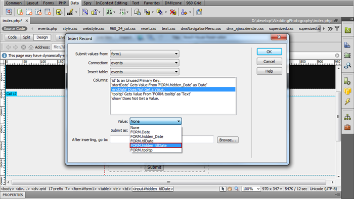 In this tutorial we will show you how to use DMXzone Calendar 2 with a standard Dreamweaver Insert Record behavior.