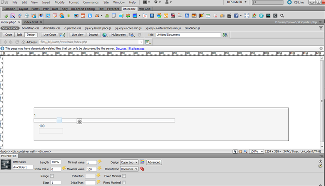 In this tutorial we will teach you how to show the DMXzone Slider value into a text field while dragging its handle.