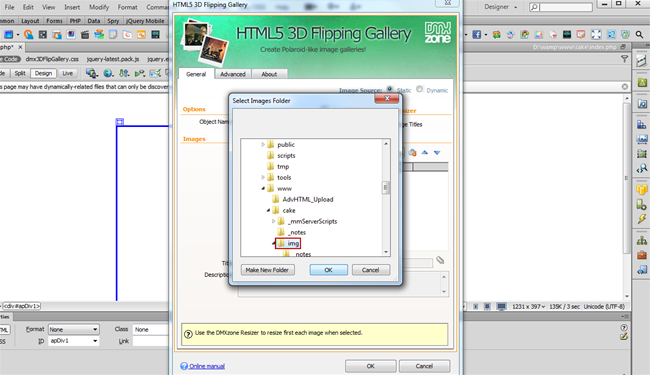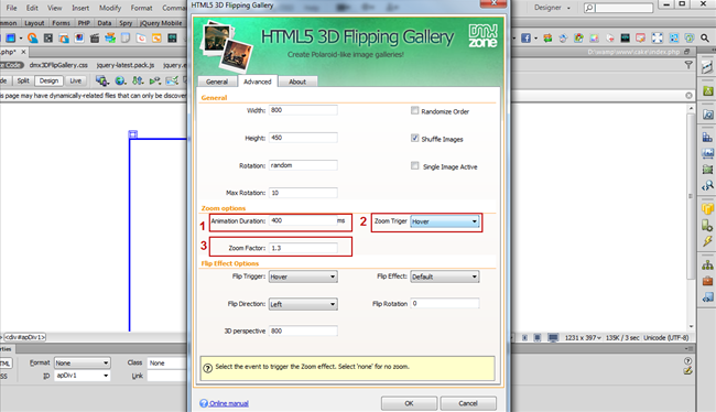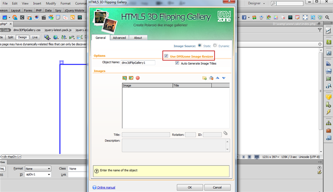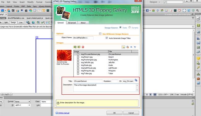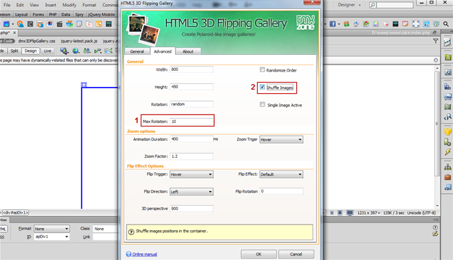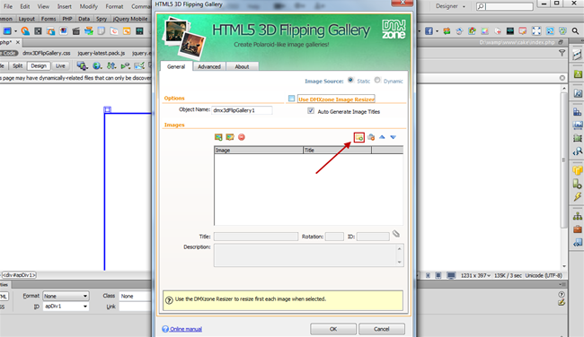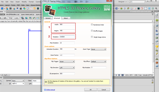 - In the HTML5 3D Flipping Gallery dialog you can either