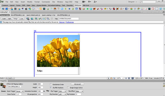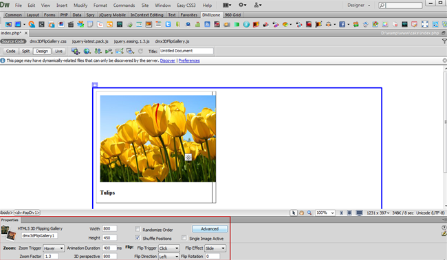 - Our HTML5 3D Flipping Gallery container will be 800
