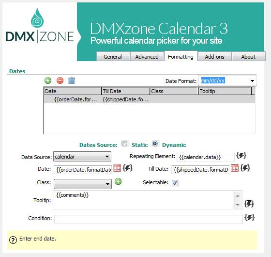 Add DMXzone Calendar 3 to any of your sites and experience the power of this awesome date picker. It's fully customizable with all international and custom date formats so it can serve your users from various locations. You can choose between many options for the calendar appearance, navigation and even add amazing animation effects when the date picker opens/closes.