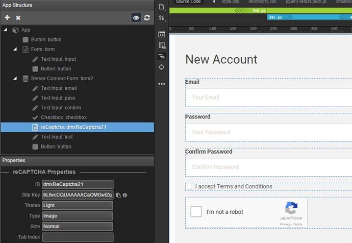 App Connect reCAPTCHA is based on the Google CAPTCHA 2 API and therefore a smart analysis engine determines if you're human. No more required to fill annoying distorted texts! With just a single click your users can verify their human nature. It takes also full advantage of DMXzone App Connect for easier integration in dynamic sites.