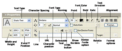 Text Options in the Property Inspector