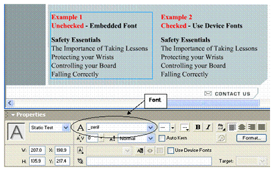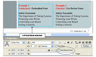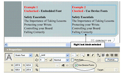 In the Property Inspector, check the Use Device Fonts box.