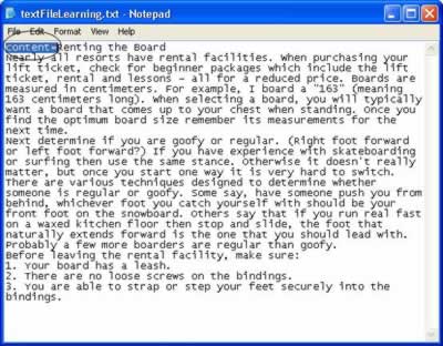 1. Open the chap_12 folder, and double-click on the textFileLearning.txt