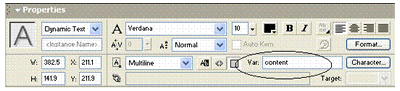 the variable name content to both the Dynamic Text field and the text