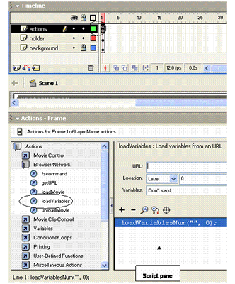 on the loadVariables option to add it to the Script pane.