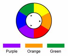 Subsequently, going a level deeper and the combination of a Primary and Secondary color gives us the Tertiary colors of red-orange, red-purple, blue-purple, blue-green, yellow-green, and yellow-orange: